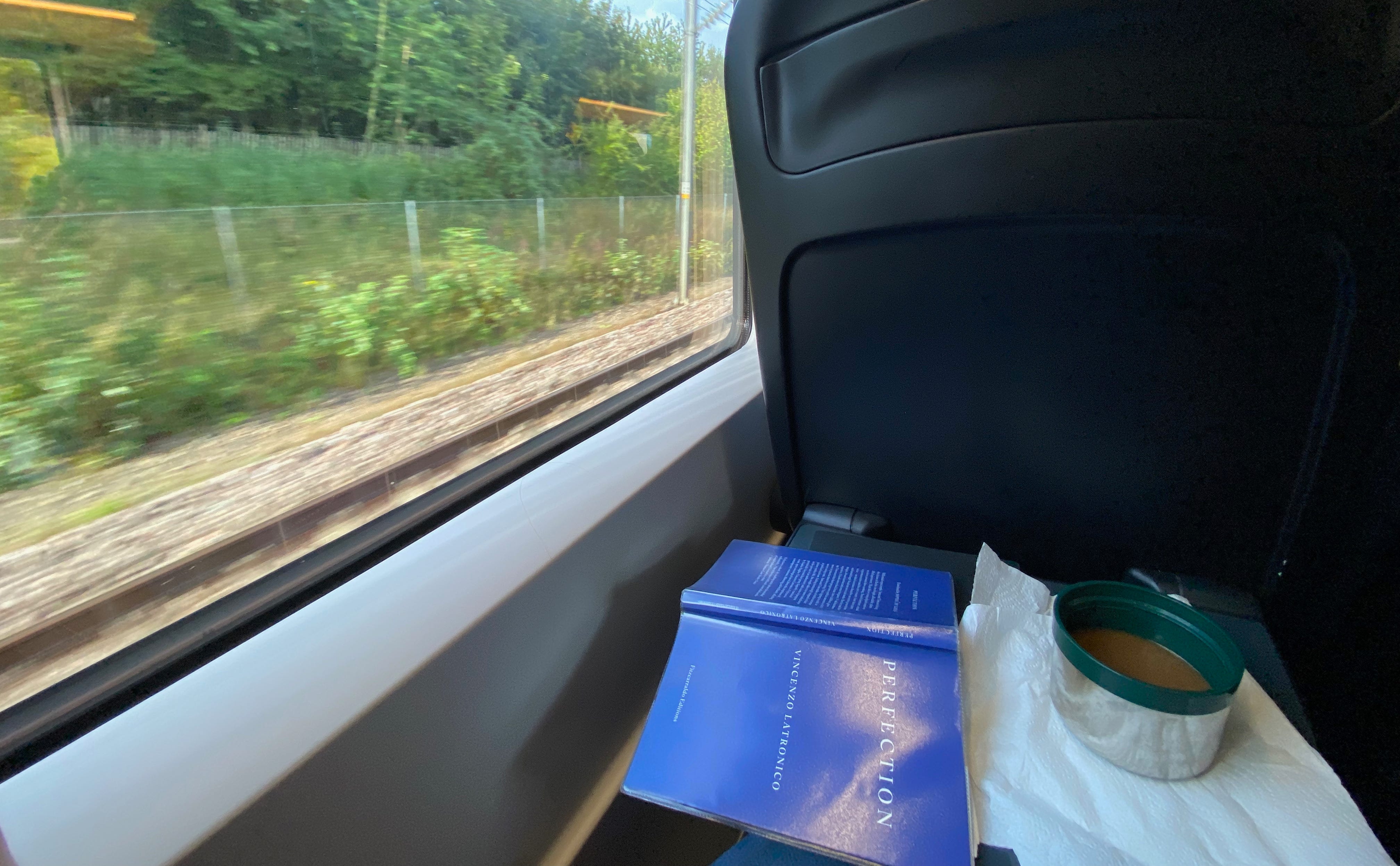 We drink our coffee as we go through Kent. There’s a huge boat in the middle of a construction site. Not by any water. Just chilling on a square mile of concrete. The tunnel bit of the Eurostar is always less exciting than you think. We emerge in a wet, grey France.